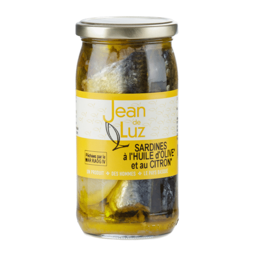 Fraîchement débarquées, nos sardines sont achetées à la criée de St Jean de Luz-Ciboure. Les sardines sont travaillées selon la plus ancienne méthode qui date de 1804 (du temps des “Penn Sardin”): elles sont d’abord salées puis séchées avant d’être mises en verrines crues. Elles conservent ainsi tout leur goût. Elles ne sont pas frites. Nos clients les trouvent plus digestes. L’avantage du bocal est qu’il ne contient pas de bisphenol et qu’il peut se refermer. Un bocal equivaut à 3 boites. La subtile pointe de citron se marie parfaitement avec nos sardines de caractère.