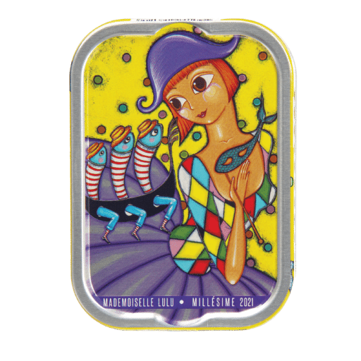 Sardines Millésimées 2021 “”Le carnaval de Mlle Lulu”” à l’huile d’olive vierge extra 115 gr